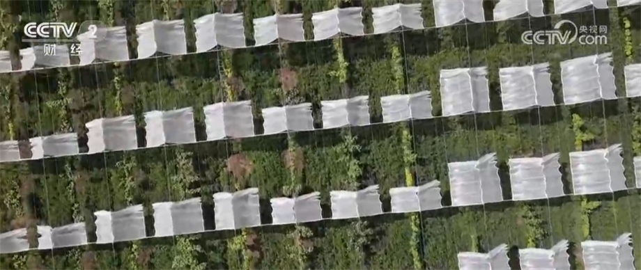總臺(tái)央視記者 金荷淼:這里是陜西楊凌的一處獼猴桃產(chǎn)業(yè)園,我所在的位置是一個(gè)黃肉獼猴桃的標(biāo)準(zhǔn)化種植基地,可以看到現(xiàn)場(chǎng)是采用了一個(gè)壟上栽培的方式,保留了比較寬的行距,能夠有利于排水。而且我們發(fā)現(xiàn),每一支主干是分出來(lái)兩根藤蔓,在藤蔓之上做了一個(gè)這樣的水平棚架,水平棚架的好處就在于能夠保證每一個(gè)獼猴桃的果實(shí)都能夠接受同等程度的水分和光照,從而使果實(shí)的大小質(zhì)量均勻統(tǒng)一。