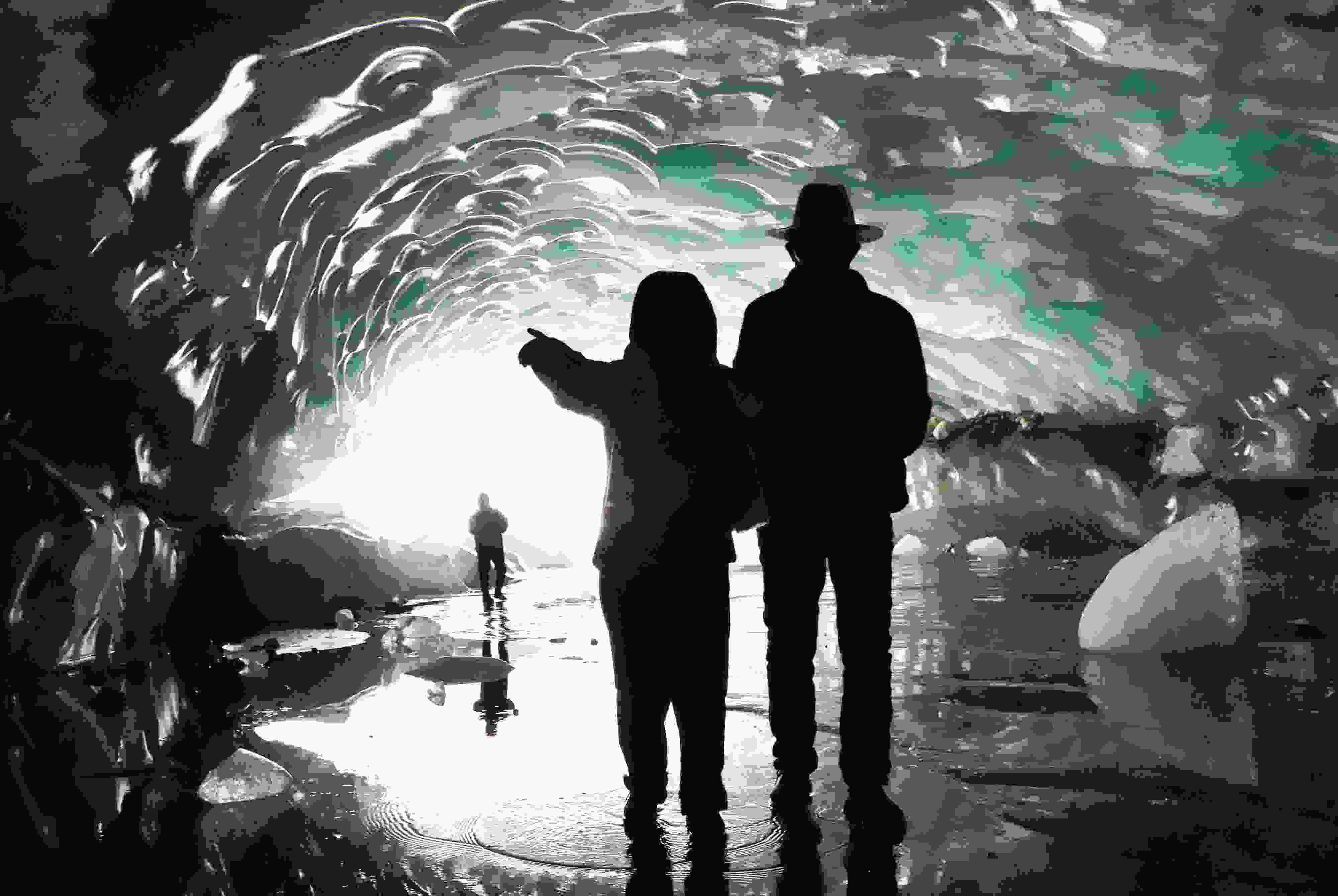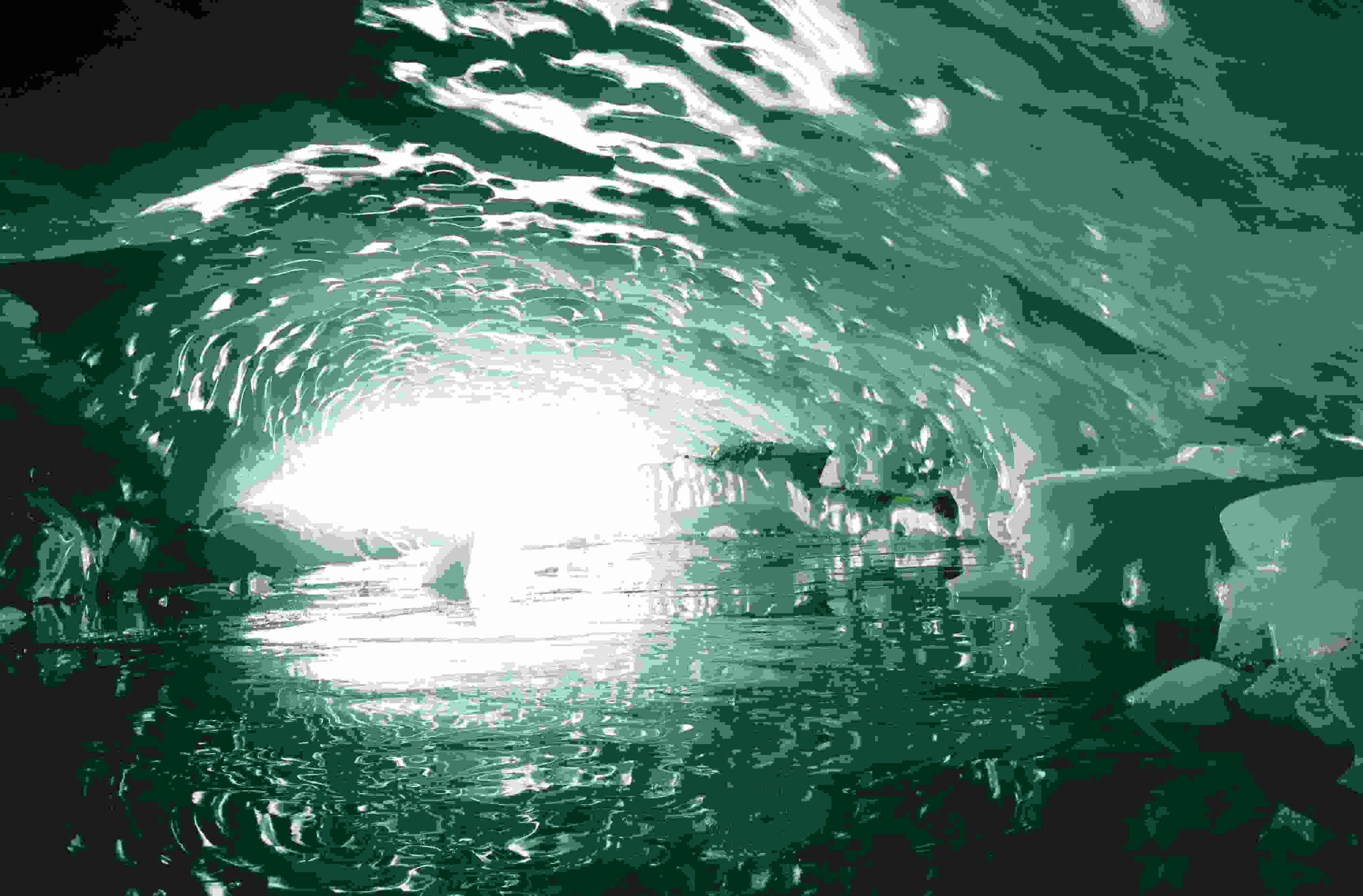 2023年5月21日,西藏昌都,游客在邊壩縣普玉一村游覽冰洞。據(jù)初步勘測(cè),貫穿的冰洞長(zhǎng)約165米、寬約26米、高約15米。呈弧拱造型的冰洞內(nèi)壁上皆是晶瑩剔透的冰柱、冰簾、冰花,其頂部呈“魚(yú)鱗”狀,在陽(yáng)光的照射下,呈現(xiàn)出夢(mèng)幻般的景象。 視覺(jué)中國(guó)