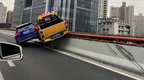 ·5月24日下午,上海內(nèi)環(huán)高架近漕溪立交段兩車碰撞,致其中一輛工程車騎跨在高架護(hù)欄上。上海交警回應(yīng):涉事兩車在行駛過程中存在互相“斗氣”行為。目前兩車駕駛員已被警方控制,警方將根據(jù)調(diào)查結(jié)果依法作出嚴(yán)肅處理。