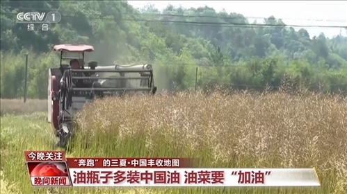 作為國內(nèi)主要食用油源,油菜籽的加工技術也在提升。鐮刀割菜、摔打脫籽的傳統(tǒng)收割方式,逐漸被智能機械化替代。一臺收割機能先后完成脫粒、粉碎油菜果殼和秸稈以及噴撒還田的全流程,還大大降低了菜籽丟損率。傳統(tǒng)人工收割一天只能收一畝,機械收割一天能收60到70畝,也就是說,一臺收割機相當于至少60個勞動力。不得不感嘆,農(nóng)業(yè)現(xiàn)代化,真香。今年夏收,油菜面積預計達到1億畝以上,增加1000萬畝左右。為了我們的“油瓶子”多裝中國油,中國油菜要“加油”。