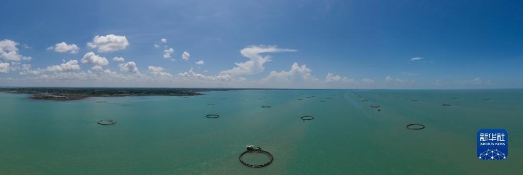 湛江徐聞西連鎮(zhèn)的“海上牧場(chǎng)”(5月27日攝,無(wú)人機(jī)全景照片)。
