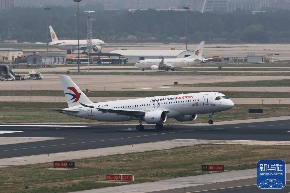 當(dāng)日,C919首個(gè)商業(yè)航班東航MU9191從上海虹橋國(guó)際機(jī)場(chǎng)起飛,安全抵達(dá)北京首都國(guó)際機(jī)場(chǎng)。