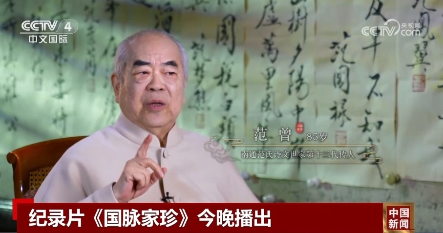 紀(jì)錄片《國脈家珍》從南通范氏詩文世家第十三代傳人范曾的視角,還原家族成員個(gè)性鮮明、造詣深厚的傳奇故事。他們或居于廟堂,持守高風(fēng)峻節(jié),或隱于江湖,揮灑豪詩雄文,呈現(xiàn)“國運(yùn)與家事榮辱相伴,時(shí)局與詩筆悲喜相連”的人物命運(yùn)。該片結(jié)合歷代傳人的詩文,反映中國傳統(tǒng)文化綿延不息,展現(xiàn)范氏家族家風(fēng)家教的細(xì)節(jié),探尋其延續(xù)的密碼。