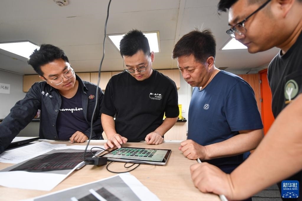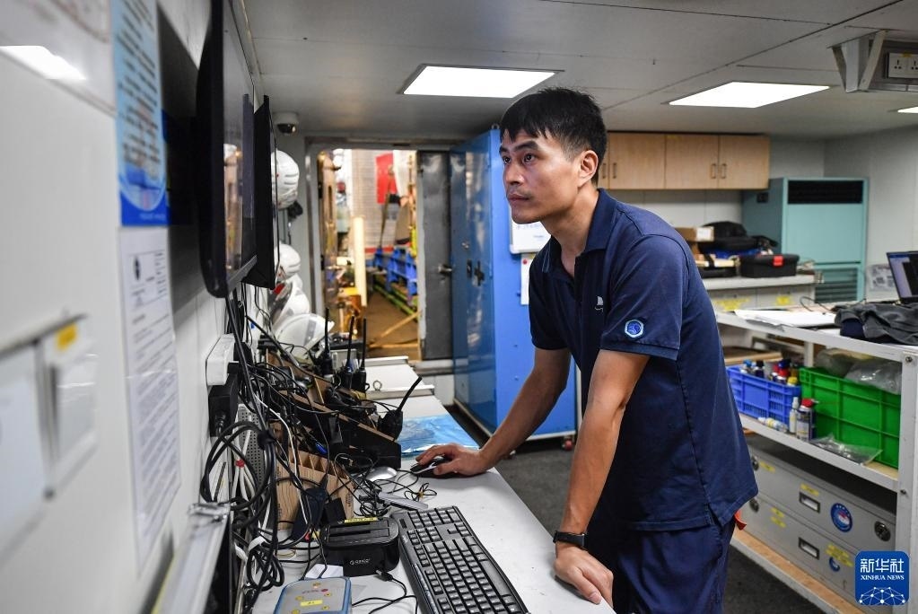 近日,由國家文物局考古研究中心、中國科學(xué)院深??茖W(xué)與工程研究所、中國(海南)南海博物館聯(lián)合組成的深??脊抨牬畛恕疤剿饕惶枴笨瓶即?,在南海西北陸坡一號、二號沉船遺址海域進行第一階段調(diào)查。該科考船載有“深海勇士”號載人潛水器,用于水下考古數(shù)據(jù)采集。新華社記者隨船跟訪,直擊調(diào)查一線。   新華社記者 蒲曉旭 攝
