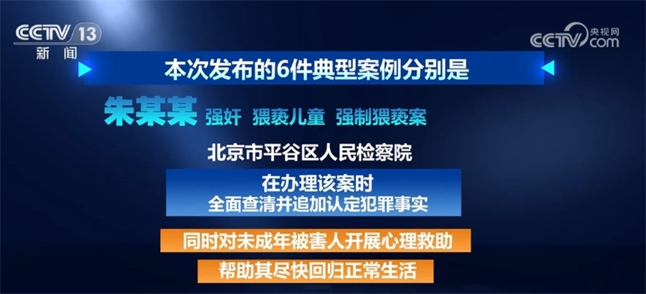 朱某某強奸、猥褻兒童、強制猥褻案。北京市平谷區(qū)人民檢察院在辦理該案時,全面查清并追加認(rèn)定犯罪事實。同時,對未成年被害人開展心理救助,幫助其盡快回歸正常生活。