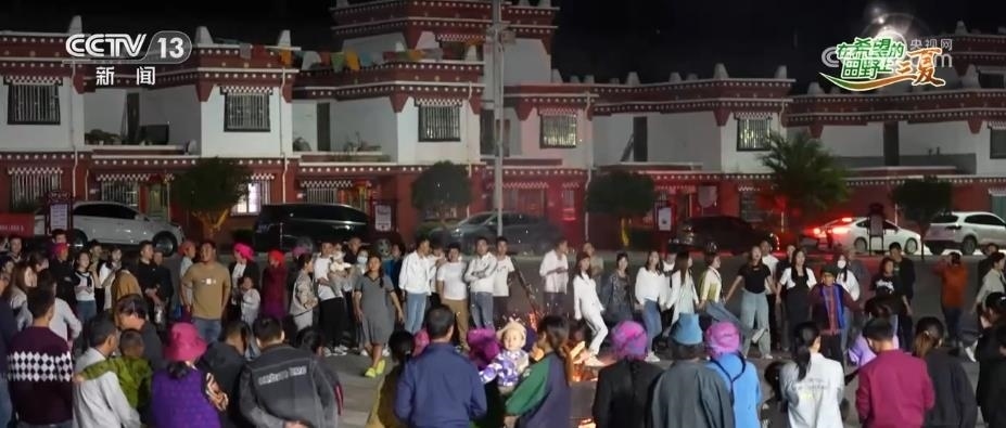 從今年五月起,每逢周末和節(jié)假日,坪埡藏族鄉(xiāng)的村民就會(huì)在廣場(chǎng)上舉辦篝火晚會(huì),每次都能吸引一兩千名周邊村鎮(zhèn)村民及游客前來。伴隨著輕快的歌曲,各族群眾手拉手跳起歡快的舞蹈,歡聲笑語(yǔ)縈繞在夏日的夜空,一片歡樂祥和的美好氛圍。