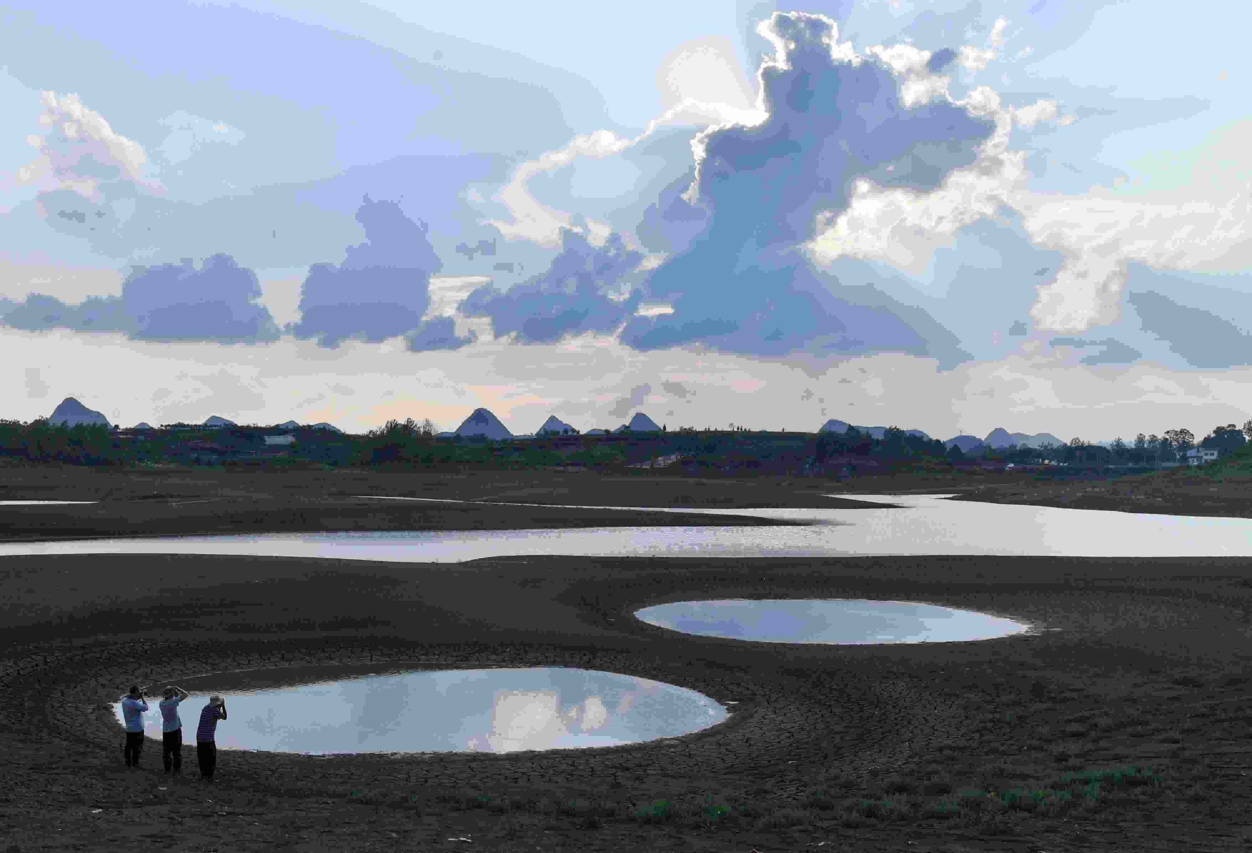 貴陽(yáng):紅楓湖水位降低 灘涂裸露