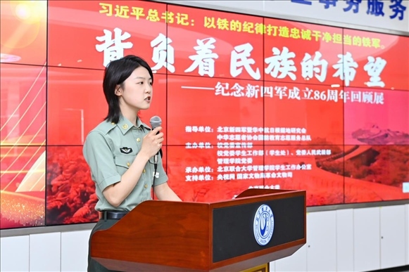 為深入學(xué)習(xí)貫徹習(xí)近平新時(shí)代中國(guó)特色社會(huì)主義思想主題教育,落實(shí)習(xí)近平加強(qiáng)全民國(guó)防教育的重要指示精神,弘揚(yáng)愛(ài)國(guó)主義精神、增強(qiáng)全民國(guó)防意識(shí),推動(dòng)全民國(guó)防教育進(jìn)校園,深化學(xué)?!按笏颊n”建設(shè),6月9日,由北京新四軍暨華中抗日根據(jù)地研究會(huì)、中華志愿者協(xié)會(huì)國(guó)防教育志愿服務(wù)總隊(duì)指導(dǎo),北京聯(lián)合大學(xué)黨委學(xué)生工作部(學(xué)生處)、黨委人民武裝部、黨委宣傳部、北京聯(lián)合大學(xué)新時(shí)代文明實(shí)踐中心建設(shè)規(guī)劃研究所、管理學(xué)院黨委共同主辦,管理學(xué)院學(xué)生工作辦公室承辦的“背負(fù)民族希望——紀(jì)念新四軍成立86周年回顧展”大會(huì)在北四環(huán)校區(qū)學(xué)生事務(wù)大廳舉行。