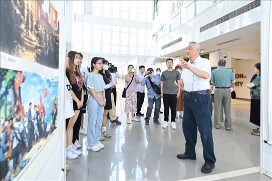 鮑新中在致辭中強(qiáng)調(diào)國(guó)防教育是青少年思想政治教育的重要內(nèi)容,是培養(yǎng)大學(xué)生愛(ài)國(guó)主義情懷的必修課,舉辦新四軍86周年回顧展,是學(xué)校深入學(xué)習(xí)貫徹習(xí)近平新時(shí)代中國(guó)特色社會(huì)主義思想主題教育學(xué)思想、強(qiáng)黨性的一次生動(dòng)實(shí)踐,是深化“大思政課”建設(shè)的有力舉措,通過(guò)了解鐵軍歷史,理解鐵軍精神,帶領(lǐng)學(xué)生們將黨史、軍史學(xué)習(xí)和推進(jìn)中國(guó)式現(xiàn)代化結(jié)合起來(lái),同實(shí)現(xiàn)中華民族偉大復(fù)興光榮使命結(jié)合起來(lái),為黨育人、為國(guó)育才。