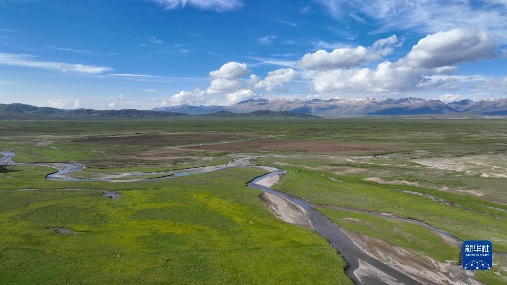 這是6月9日在青海省黃南藏族自治州澤庫縣拍攝的高原草原(無人機照片)。