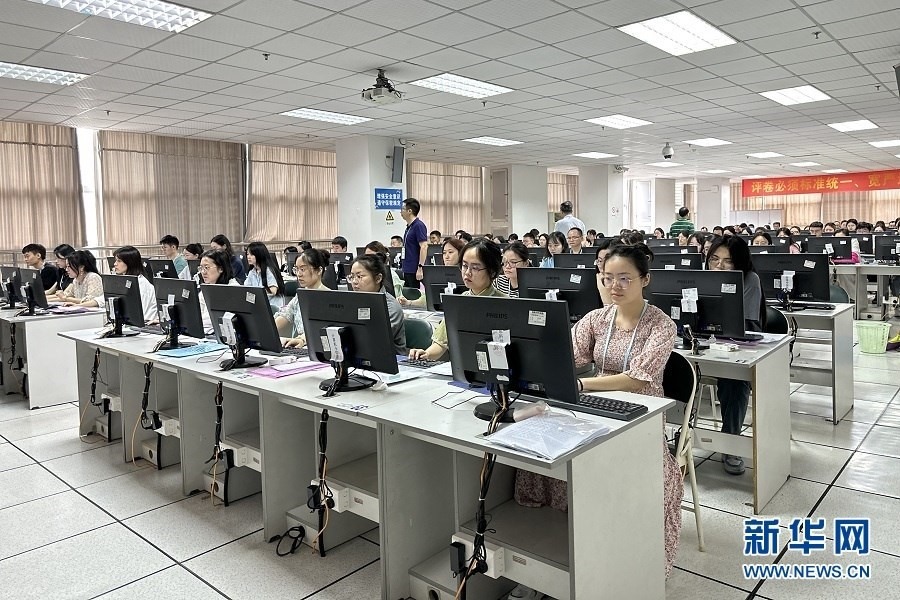 6月13日,全國統(tǒng)考科目西南大學(xué)評卷點,評卷教師正在閱卷。新華網(wǎng) 彭浩然 攝