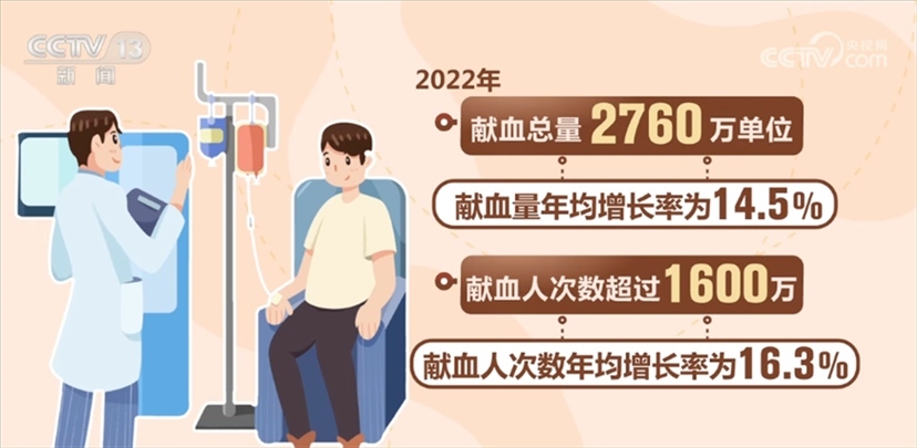 國家衛(wèi)生健康委相關(guān)負(fù)責(zé)人表示,我國無償獻(xiàn)血工作目前已形成了“政府主導(dǎo)、部門協(xié)作、社會(huì)支持、公眾參與”的格局,無償獻(xiàn)血制度全面建立,血液管理制度和規(guī)范標(biāo)準(zhǔn)體系不斷完善。全國建立了橫向到邊、縱向到底的血站采供血服務(wù)體系。全國共建設(shè)血站453家,形成以省級(jí)血液中心為龍頭、地市級(jí)中心血站為主體、中心血庫為補(bǔ)充的血站服務(wù)體系。我國血液安全保障水平大幅提升。全國無償獻(xiàn)血人次數(shù)和獻(xiàn)血量實(shí)現(xiàn)20多年持續(xù)增長,千人口獻(xiàn)血率由1998年的4.8提升至2022年11.5,2022年獻(xiàn)血總量2760萬單位,獻(xiàn)血量年均增長率為14.5%。2022年獻(xiàn)血人次數(shù)超過1600萬,獻(xiàn)血人次數(shù)年均增長率為16.3%。今年1—5月,獻(xiàn)血人次數(shù)和獻(xiàn)血量比去年同期增長7.7%和6%。