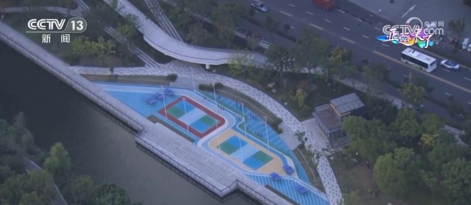 整個(gè)未來科技城范圍內(nèi)總計(jì)有10余個(gè)這樣子的嵌入式體育公園,20余條綠道,配備了籃球場(chǎng)、游步道、騎行道等健身配套,惠及了10萬多居民。