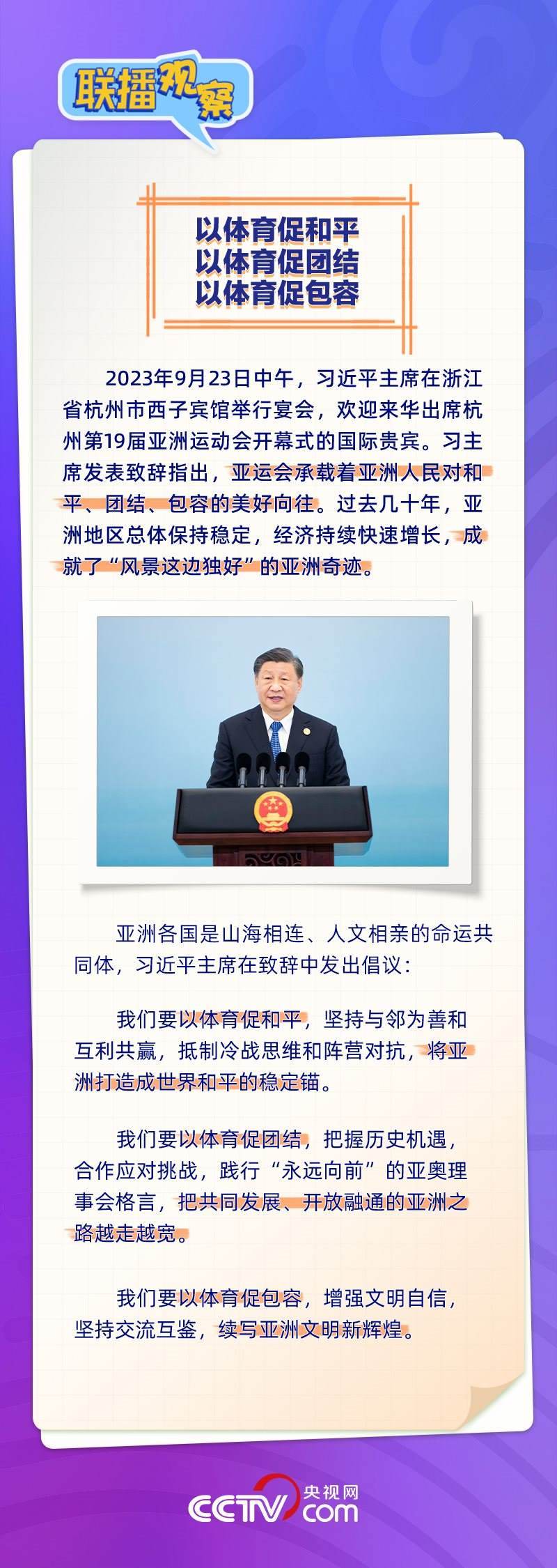 9月23日,習(xí)近平主席在歡迎來華出席杭州第19屆亞洲運(yùn)動(dòng)會(huì)開幕式的國際貴賓午宴上祝愿大家“在詩畫浙江度過難忘的時(shí)光,在亞運(yùn)會(huì)圣火下留下美好的記憶”。