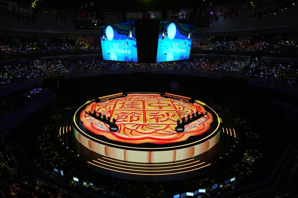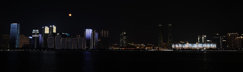 這是中秋當晚拍攝的杭州奧體中心