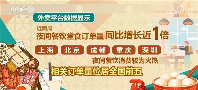 亞運會期間,杭州還將組織多場亞洲美食主題活動、推薦500家亞洲美食季餐廳,預計拉動500億元消費。外賣平臺數據顯示,近兩周,夜間餐飲堂食訂單量同比增長近1倍。其中,上海、北京、成都、重慶、深圳的夜間餐飲消費較為火熱,相關訂單量位居全國前五。