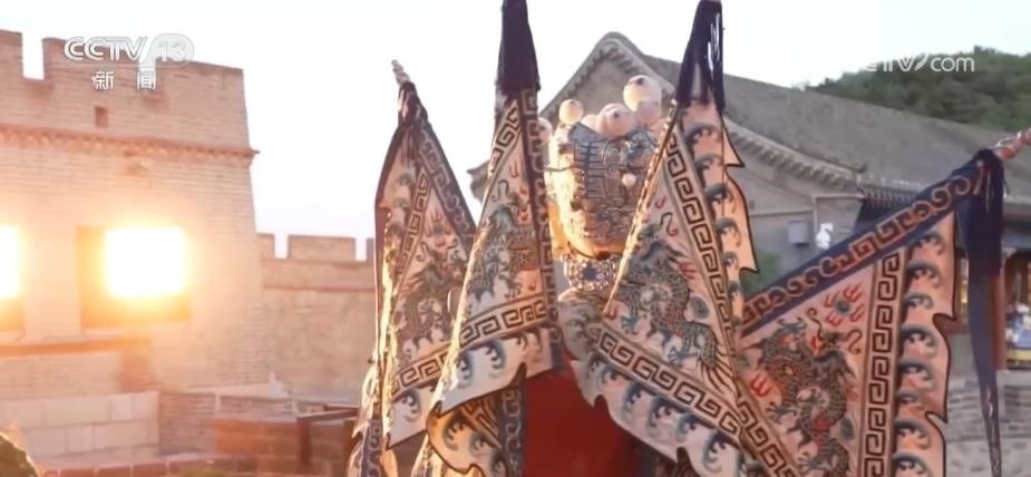 除了觀賞之外,八達(dá)嶺長城還為游客提供了豐富的消費(fèi)體驗(yàn)。在文化街區(qū)里,正在上演《夢回長城,八方來鶴》為主題的演出,游客們可以和京劇、地方歌舞的表演者互動。絢爛的燈光表演則為古老的長城增添了不少現(xiàn)代感與時尚感。穿上漢服,買一面國旗,品嘗一下長城的文創(chuàng)雪糕,市集小店里洋溢著濃濃的煙火氣。