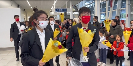 “鏗鏘玫瑰,中國(guó)加油!”當(dāng)中國(guó)隊(duì)球員走入國(guó)際到達(dá)大廳后,人群中發(fā)出整齊的助威聲。球迷們、孩子們紛紛把鮮花送給隊(duì)員們,有的與她們合影留念。當(dāng)看到主教練水慶霞走過來,大家非常熱情,把水指導(dǎo)圍在中間,送上鮮花,致以問候。