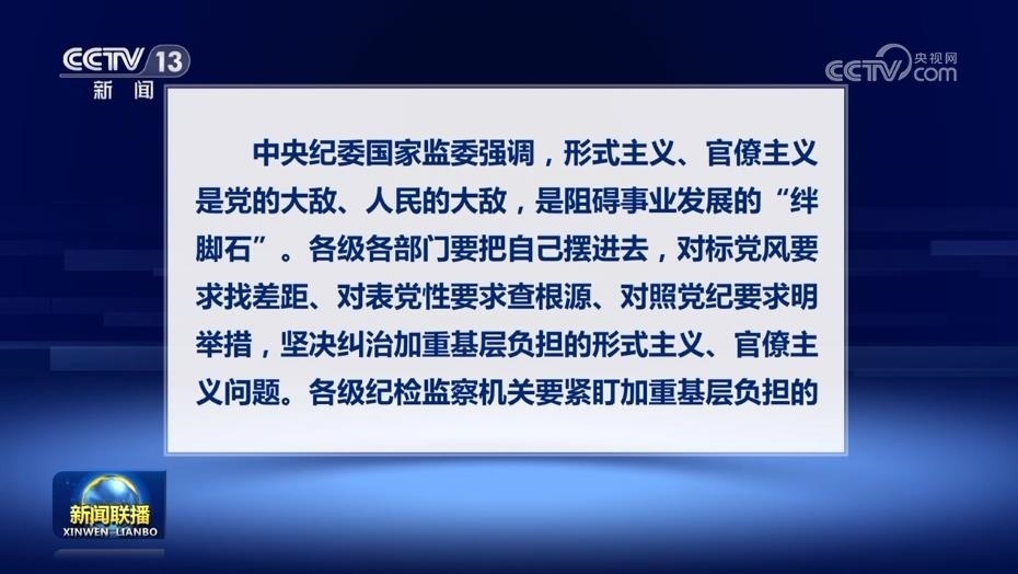 央視網(wǎng)消息(新聞聯(lián)播):二十屆中央紀(jì)委二次全會(huì)對(duì)加強(qiáng)作風(fēng)建設(shè)作出部署,強(qiáng)調(diào)要重點(diǎn)糾治形式主義、官僚主義。日前,中央紀(jì)委國(guó)家監(jiān)委對(duì)十起加重基層負(fù)擔(dān)的形式主義、官僚主義典型問題進(jìn)行公開通報(bào)。