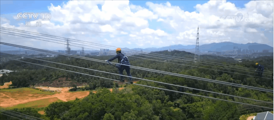 百米高空中,一段電網(wǎng)員工走線的視頻在網(wǎng)絡迅速走紅,視頻中的就是南方電網(wǎng)深圳供電局的輸電工作人員。當天,在做好安全防護后,他們頂著烈日,攀上相當于30多層樓高的百米高塔,對長達一公里的500千伏輸電線路開展走線驗收工作。