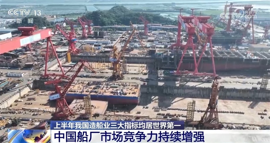 央視網(wǎng)消息:工業(yè)和信息化部今天(7月12日)發(fā)布我國造船業(yè)最新數(shù)據(jù),上半年我國造船業(yè)三大指標(biāo)均位居世界第一;新接訂單量的國際市場份額超過了70%,實現(xiàn)了我國造船業(yè)國際市場新接訂單量的新紀(jì)錄。?