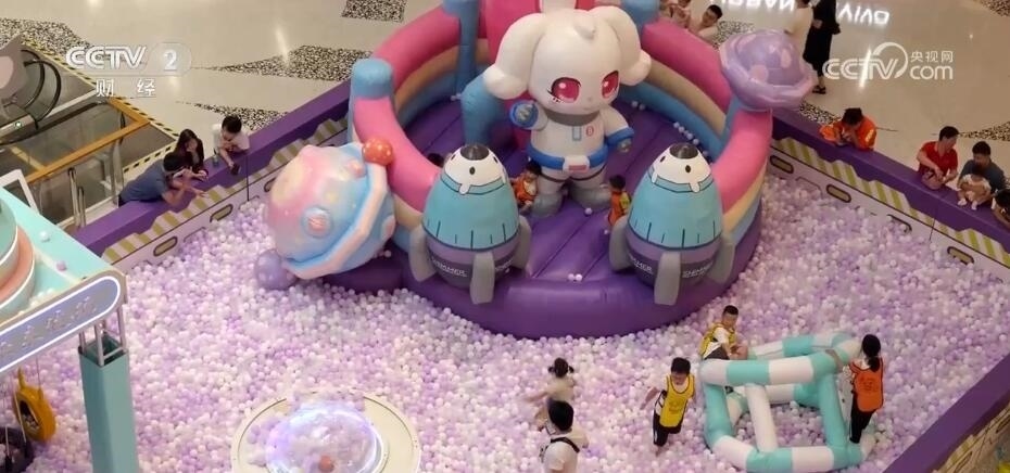 上海某商場運(yùn)營經(jīng)理 趙佳麗:我們會在暑假檔的時候,在中庭引入一些比較熱門的IP(知識產(chǎn)權(quán))游玩設(shè)施。另外,因為三樓是兒童業(yè)態(tài),所以全年都會安排一些固定的互動點(diǎn)來供周邊的家庭游玩。
