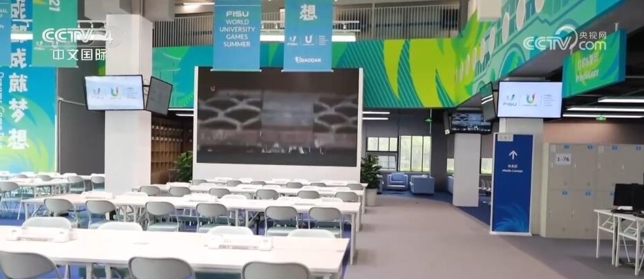總臺(tái)記者 蔣林:我現(xiàn)在就在成都大運(yùn)會(huì)的主媒體中心,它與在大運(yùn)會(huì)當(dāng)中承擔(dān)開(kāi)幕式的東安湖主體育場(chǎng)和火炬塔隔東安湖相望。我身后的這座建筑有一個(gè)非常好聽(tīng)的名字,叫做東安書(shū)院。這是因?yàn)樵诔啥即筮\(yùn)會(huì)結(jié)束之后,這里將會(huì)變身成為成都東部地區(qū)面對(duì)市民開(kāi)放的一座公共圖書(shū)館。而現(xiàn)在一直到比賽的賽會(huì)期間,這里就是成都大運(yùn)會(huì)的主媒體中心。它有兩大職能,分別是主新聞中心和國(guó)際廣播中心。今天這里將會(huì)對(duì)媒體試開(kāi)放,我們一起去看看里面現(xiàn)在準(zhǔn)備好了嗎?