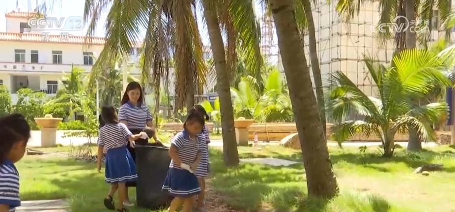 每周三的下午,海南三沙市永興學(xué)校的孩子們都會(huì)迎來他們的愛島日活動(dòng),這位帶著孩子們撿拾垃圾的老師就是吳泉穗。