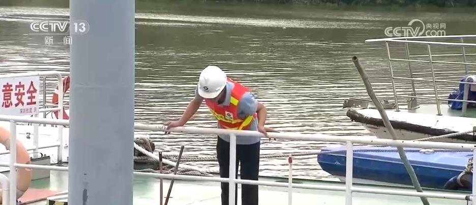 在深圳河皇崗碼頭段,水務(wù)部門的工作人員正在進(jìn)行臺風(fēng)前的巡查工作。臺風(fēng)來臨前,河流船只必須全部回港避險(xiǎn)并進(jìn)行加固處理,沿河的各項(xiàng)工程必須停工。