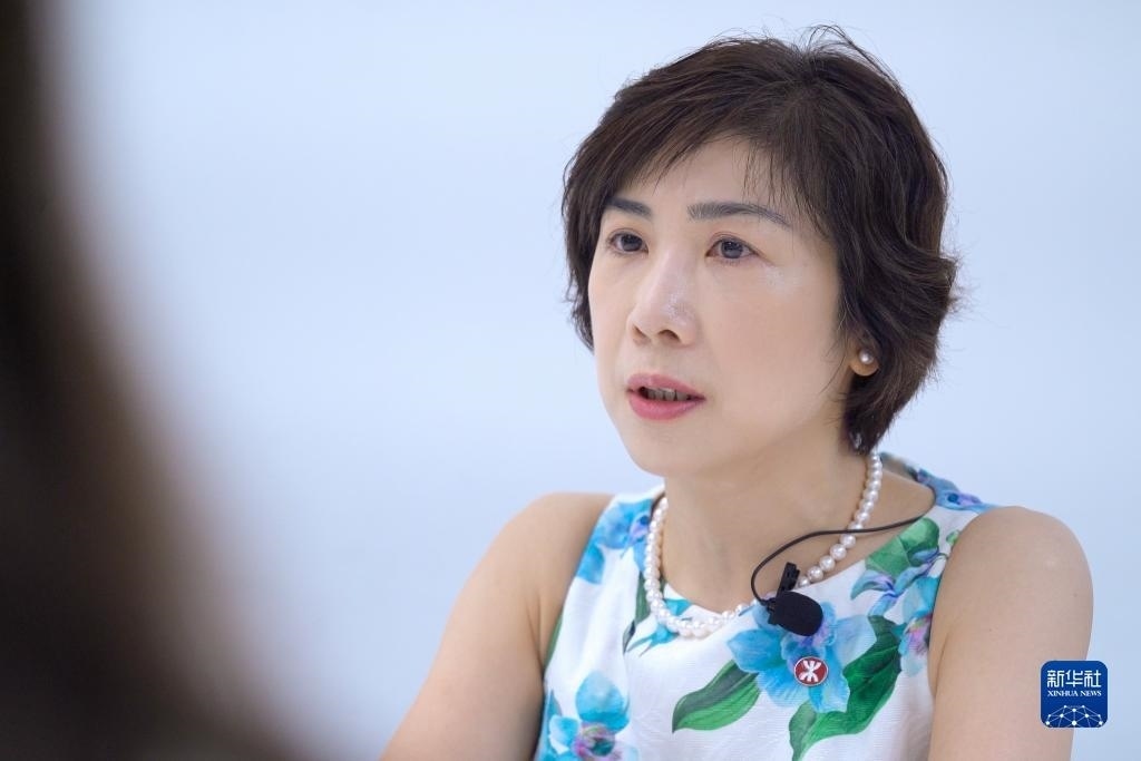 港鐵公司總經(jīng)理(市務(wù)及客戶體驗)梁靜雯接受采訪(7月12日攝)。新華社記者 龍鏡伊 攝