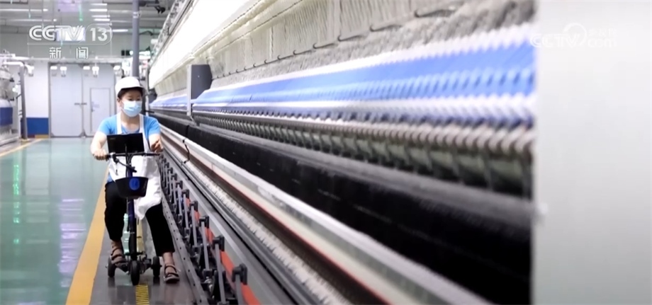 總臺央視記者 鄭怡哲:用于服裝的精梳棉紗,從棉花種植、軋花到加工成粗紗、細紗,再到成品運輸、入庫,全流程下來,1千克棉紗的碳足跡值僅為4公斤左右的二氧化碳。在這條直徑不到0.1mm的紗線上,要滿足強度、透氣、舒適性等指標(biāo),同時也要兼顧節(jié)能、環(huán)保和碳排放。要在這條細細的紗線上做出如此大的文章,離不開企業(yè)的高質(zhì)量發(fā)展和科技的支持。