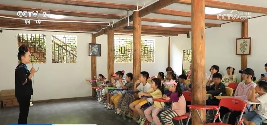 在貴州雷山縣的這個(gè)景區(qū)的研學(xué)基地里,來(lái)自全國(guó)各地的孩子們正在認(rèn)真聆聽著民族文化課,唱苗歌、吹蘆笙、跳苗舞,孩子們玩得不亦樂乎。