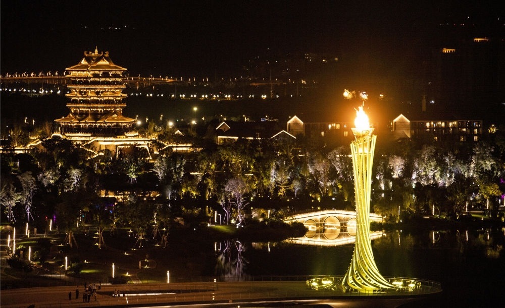 第三十一屆世界大學(xué)生夏季運(yùn)動(dòng)會(huì)開幕式主體育場(chǎng)及主火炬。