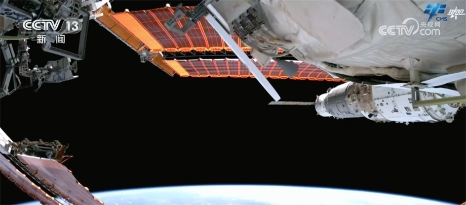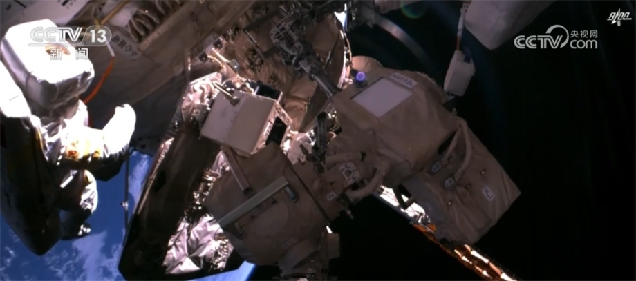 7月20日,神舟十六號(hào)航天員景海鵬、朱楊柱、桂海潮密切協(xié)同,在空間站機(jī)械臂支持下,圓滿完成出艙活動(dòng)。出艙期間,完成了核心艙全景相機(jī)B在軌支架安裝及抬升、夢(mèng)天艙全景相機(jī)A和B解鎖及抬升等任務(wù),我們現(xiàn)在看到的就是相機(jī)抬升后所拍到的畫(huà)面。