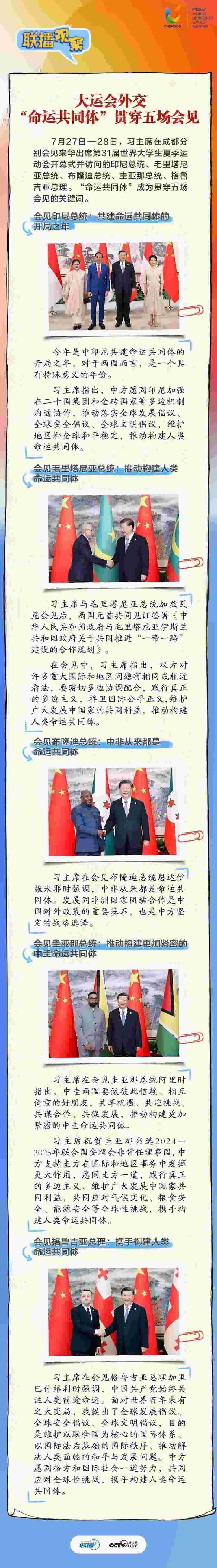 大運會時間,我國重要的主場外交也同步拉開帷幕,習近平主席的日程格外繁忙。央視網《聯播+》帶您沉浸式感受這場青春盛會為世界送出的別具匠心的“四川禮物”。