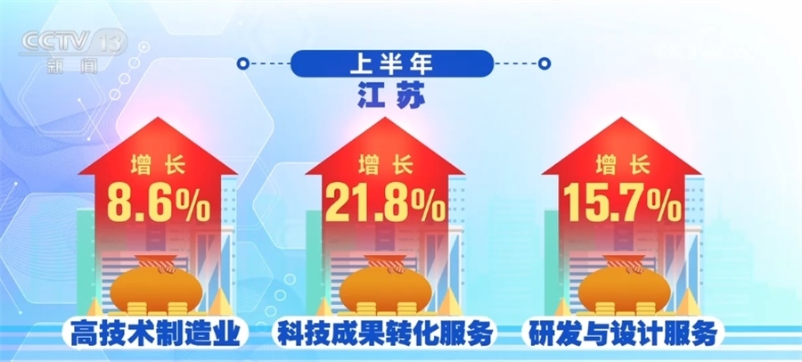 江蘇、浙江、安徽把創(chuàng)新當做制造業(yè)升級的著力點。上半年,江蘇高技術制造業(yè)增長8.6%,科技成果轉化服務、研發(fā)與設計服務分別增長21.8%和15.7%。浙江上半年,科學研究和技術服務業(yè)投資增長52.2%。規(guī)模以上工業(yè)中,新產品產值率已經達到41.4%,并在持續(xù)提高。安徽上半年裝備制造業(yè)增加值增長了15.3%,汽車產業(yè)增長42.6%,光伏產業(yè)增長了一倍。