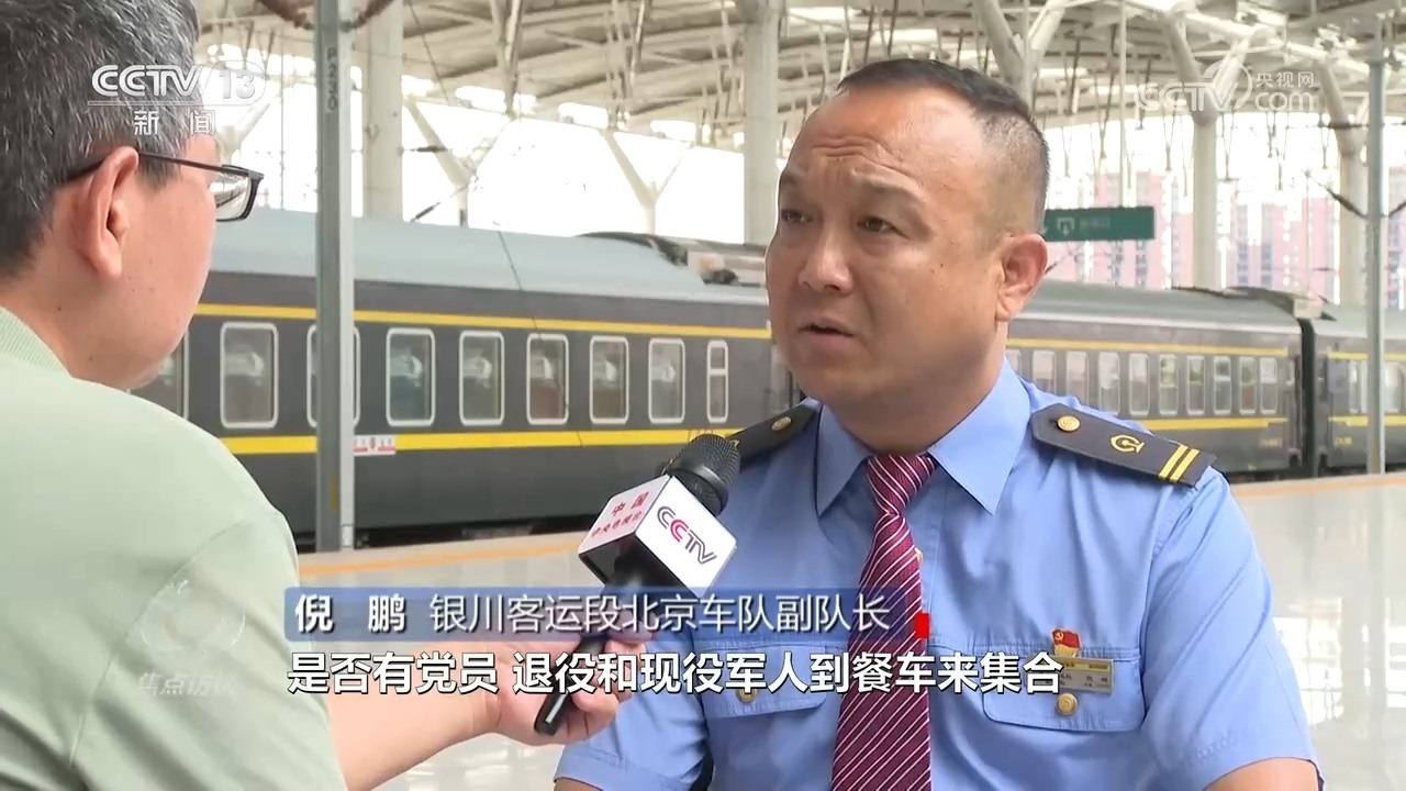 銀川客運(yùn)段北京車隊(duì)副隊(duì)長(zhǎng)倪鵬:“20時(shí)左右,我們通過(guò)廣播召集車廂里面的旅客,是否有黨員、退役和現(xiàn)役軍人,到餐車來(lái)集合,目的是發(fā)揮黨組織作用,讓大家共同攻堅(jiān)克難,做好旅客的安撫工作?!?/p>