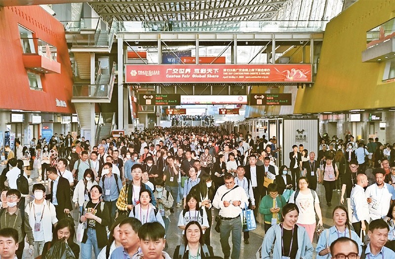 第133屆中國(guó)進(jìn)出口商品交易會(huì)(廣交會(huì))線(xiàn)下展于2023年4月15日至5月5日分3期舉辦,同時(shí)線(xiàn)上平臺(tái)全年常態(tài)化運(yùn)營(yíng)。本屆廣交會(huì)展覽面積、參展企業(yè)數(shù)量均創(chuàng)歷史新高,吸引220多個(gè)國(guó)家和地區(qū)的數(shù)十萬(wàn)采購(gòu)商報(bào)名參會(huì)。圖為4月26日拍攝的廣交會(huì)現(xiàn)場(chǎng)。 中新社記者 陳楚紅/攝