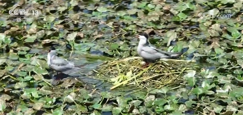 比如,兩地工作人員實現(xiàn)了聯(lián)合巡河、管護(hù)、治理。元蕩湖生態(tài)岸線的相關(guān)建設(shè),包括我所在的這個公園和步行橋也是兩地統(tǒng)一審批、接力建設(shè)起來的。目前,元蕩湖水質(zhì)已經(jīng)達(dá)到國家考核目標(biāo),生態(tài)岸線占比超過80%。在湖心的位置有一處水草聚集區(qū)域,船是不會靠近的,這是人為劃定的水上鳥兒的保育區(qū),能看見不少水鳥在那里嬉戲飛翔。鏡頭拉近,有的鳥兒已經(jīng)在這里筑巢產(chǎn)卵,把家安在了元蕩湖,水質(zhì)好不好,鳥兒最有發(fā)言權(quán)?,F(xiàn)在,元蕩湖在水系連通、河道清障、岸坡整治、水源涵養(yǎng)等方面實現(xiàn)了統(tǒng)一推進(jìn)。