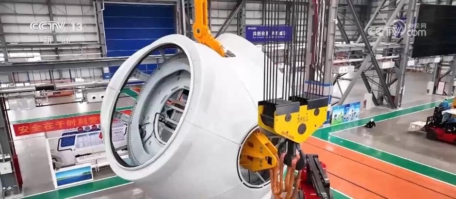 總臺(tái)記者 趙雄:在現(xiàn)場(chǎng)我們看到,生產(chǎn)一臺(tái)機(jī)組所需要的輪轂、發(fā)電機(jī)、傳動(dòng)裝置等各個(gè)部件都匯聚在這里,而這些部件都來自不同的供應(yīng)商。