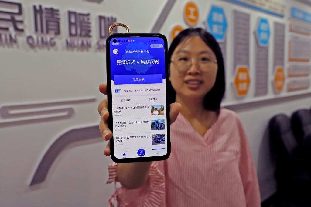 浦江市民通過(guò)“民情暖哨”網(wǎng)絡(luò)平臺(tái)反映訴求并進(jìn)行平臺(tái)首頁(yè)展示。(方黎晨 攝)