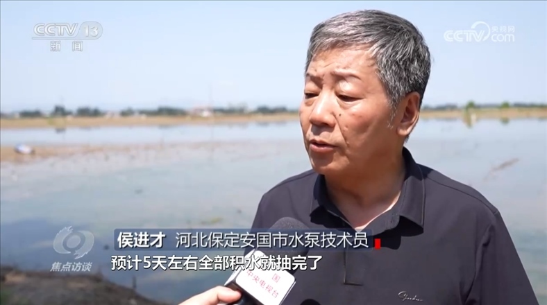 在河北涿州,多臺大型水泵正在對東城坊鎮(zhèn)的賈村、茂田莊村、徐家莊村的農田抽排積水。