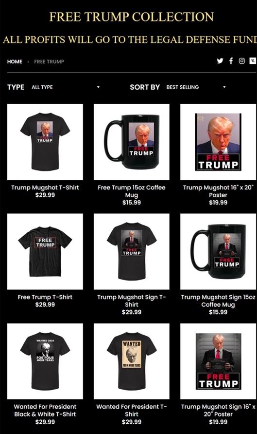 ·為競選造勢?高調(diào)投案后,特朗普“監(jiān)獄大頭照”周邊產(chǎn)品開售。