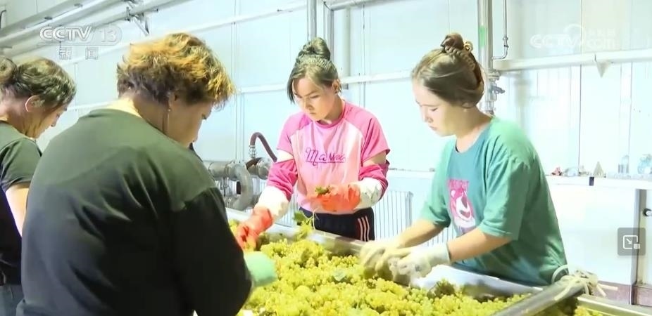 這兩天,在新疆巴州焉耆縣七個(gè)星鎮(zhèn)的千畝葡萄種植基地,晶瑩剔透的葡萄掛滿枝頭、甜香撲鼻。工人們正在忙著采摘,采摘完畢的葡萄會(huì)被裝車運(yùn)送到壓榨車間。