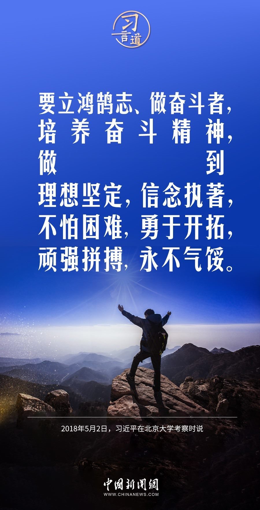 少年強、青年強則中國強。習近平總書記在多個場合寄語少年、青年們,要立鴻鵠志、做奮斗者。