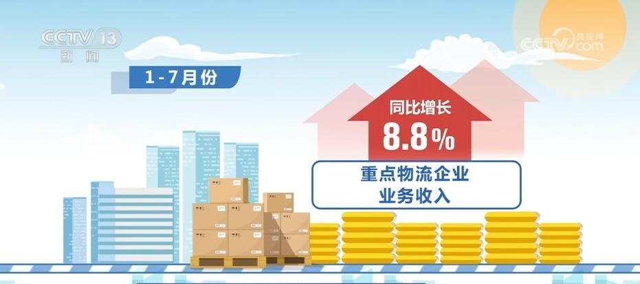 1—7月份重點物流企業(yè)業(yè)務(wù)收入同比增長8.8%