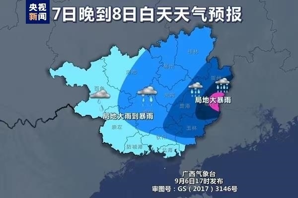 “??蓖>?殘渦將移入廣西 8日起大到暴雨局地大暴雨來襲
