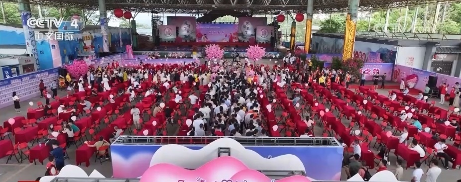 在廣東東莞,第35屆觀音山相親會吸引來自粵港澳大灣區(qū)近1000余名單身男女青年?;顒蝇F(xiàn)場通過“月老牽線”、紅娘支招、玫瑰傳情、宋風(fēng)漢式婚禮展演等互動環(huán)節(jié)為廣大單身男女青年牽線搭橋,將浪漫指數(shù)拉滿。此外,宋風(fēng)漢式婚禮展演的親迎之禮、卻扇之禮等宋代婚禮經(jīng)典環(huán)節(jié)一一呈現(xiàn),沉浸式體驗千年前古人的浪漫。