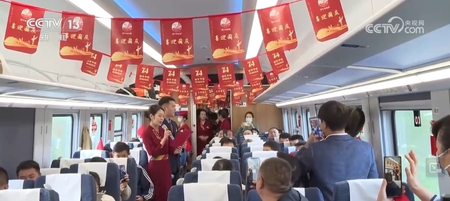 車廂內(nèi)掛滿了國慶主題的旗幟、窗花,“天路格桑花”文藝小分隊(duì)揮動(dòng)著手中的五星紅旗,與旅客齊聲合唱《我和我的祖國》,還表演了詩朗誦、快板等節(jié)目,贏得了現(xiàn)場(chǎng)旅客的掌聲。