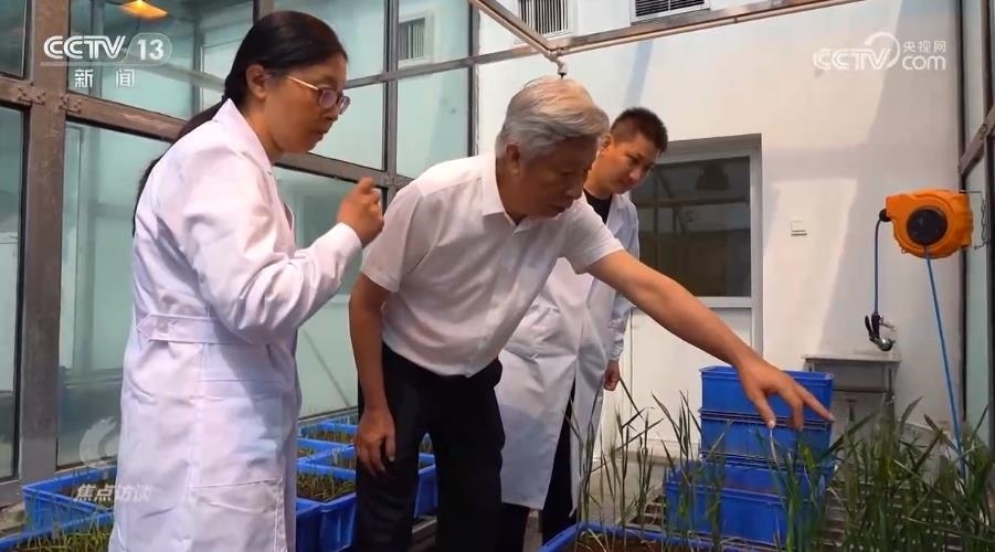 在河南省農(nóng)業(yè)科學(xué)院的玻璃溫室,50株剛剛破土一個(gè)月的小麥新品種幼苗長(zhǎng)勢(shì)不錯(cuò)。小麥品種的培育者——小麥育種專家許為鋼院士帶著團(tuán)隊(duì)細(xì)心地查看這些幼苗。